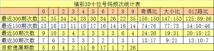 十位分析:前50期出号频次较高的号码为:1开出10次,0开出9次,8开出6次;出号频次较低的号码为:2、5、6、7开出3次。该位号码大小比为19:31,012路比为20:18:12。本期该位排除两码1、3,注意号码5、7、8,精选一码7。